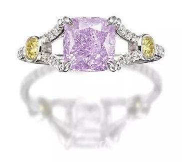 1.51克拉天然浓彩粉紫色VS2净度钻石配钻石戒指