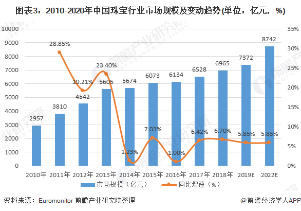 我国珠宝行业2019年市场规模初步估算达到7372亿元