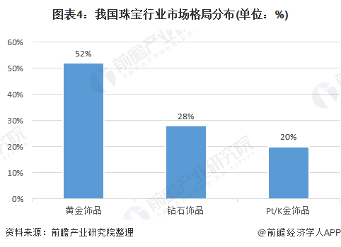 我国珠宝行业中黄金饰品占比达到52%
