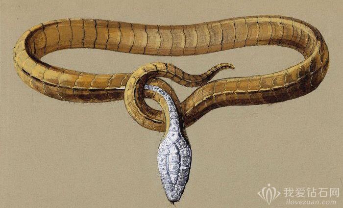 Serpent Bohème的设计灵感源自1888年 Boucheron(宝诗龙) 创始人 Frédéric Boucheron 赠送给妻子的一条蛇形项链,蜿蜒的蛇身设计为铰接结构,自然贴合颈部轮廓;蛇首则铺镶定制切割钻石,成为引人注意的焦点。