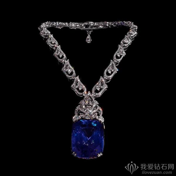 zheike422.66ctlanbaoshixiangqianyuyimeidachicundeguazhui,you4zubojinxiangzhuatuoqi,xiangzuocemianqiaomiaorongruhuahuiwenyang,dapeimingliangdezuanshixiangshi。zhengtiaoxiangliancaiyongbaijinzhizuo,gongxiangqian913kezongzhongda36.30ctdezuanshi,lianjieshejiweichouxiangfenggedeshichejutuan,yuzhushiziranxianjie,liankouhoufanghaizhuiyouyike4.02ctdeshuidixingzuanshi,xingchengweimiaodepinghenggan。