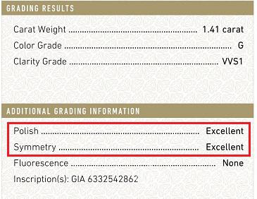 changjianyuanzuancongsangefangmianzonghepanduanzuanjieqiegongdengji,fenbiewei:polish(paoguang)、symmetry(duichengxing)、cut grade(qiegongbili)。