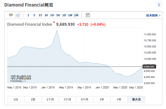 2020nian10yue,zuanshijiagezonghezhishu(diamond financial index)kaipan9512.68,jiezhi10yue31ri,shoupan9689.93,shangzhang1.86%,chuang18geyueyilaizuidadanyuezhangfu。(diamond financial index yi2018nian4yuefende10,000dianweijishu)