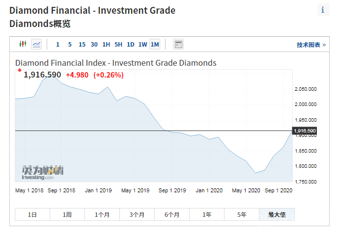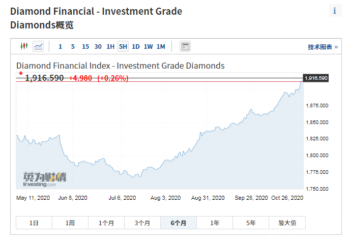2020nian10yue,touzijizuanshijiagezhishu(investment grade diamonds)kaipan1861.68,jiezhi10yue31ri,shoupan1916.59,shangzhang2.95%。