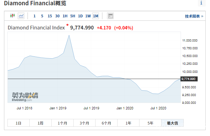 2020nian11yue,zuanshijiagezonghezhishu(diamond financial index)kaipan9689.93,jiezhi11yue30ri,shoupan9774.99,shangzhang0.88%。(diamond financial index yi2018nian4yuefende10,000dianweijishu)