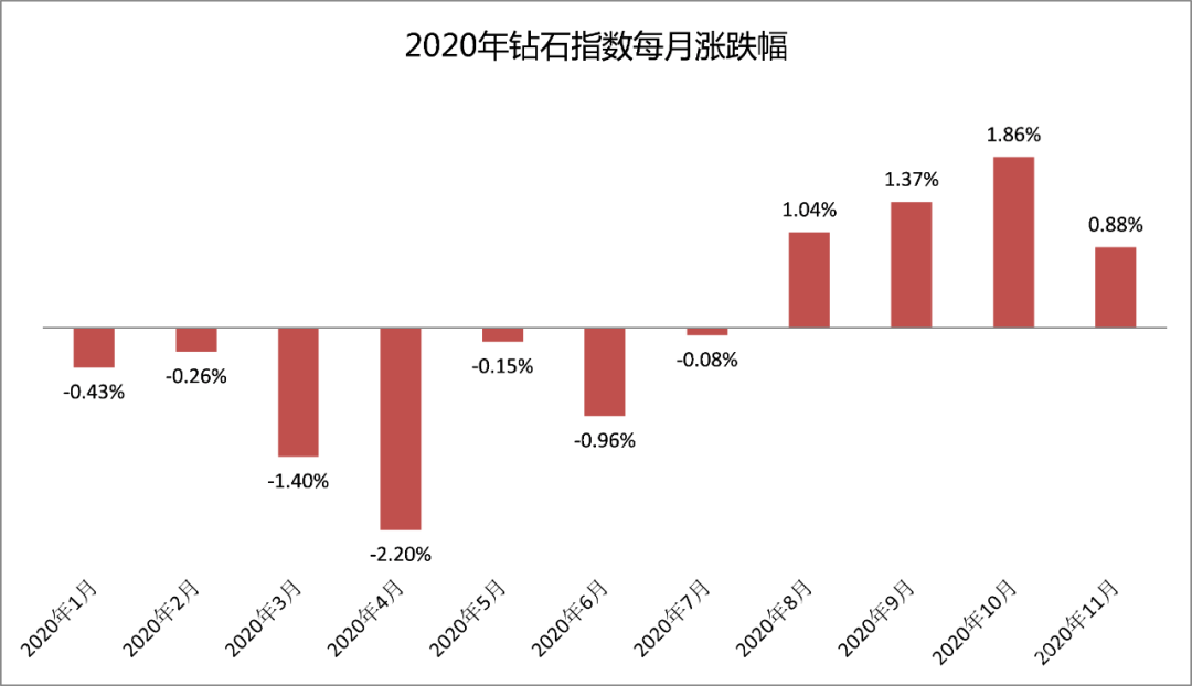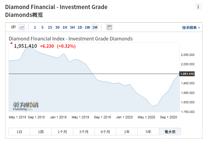 2020nian11yue,touzijizuanshijiagezhishu(investment grade diamonds)kaipan1916.59,jiezhi11yue30ri,shoupan1951.41,shangzhang1.82%。