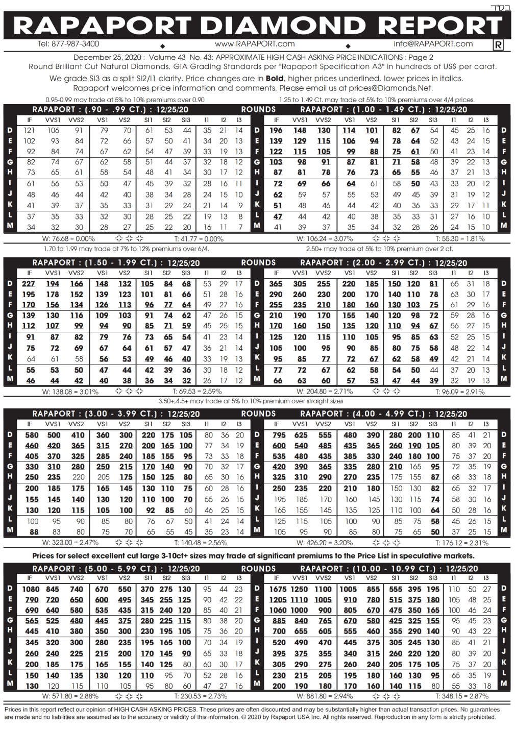 2020年12月25日最新Rapaport钻石报价表(图文)