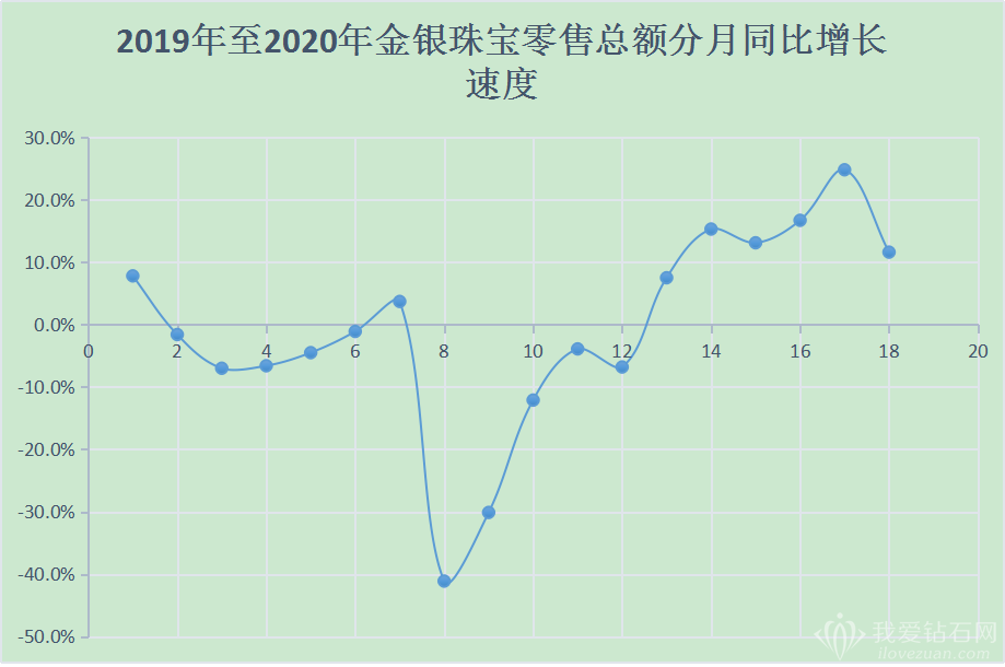 cong2019nianzhi2020nianjinyinzhubaolingshouzongefenyuetongbizengzhangsuduzheigebiaogelaikan,2020nianshangbannian,jinyinzhubaolingshouzongeyizhichuyufuzengzhangzhuangtai,cong6yuefenkaishi,jinyinzhubaolingshouzongeshoucizhuanzheng,qielianxuliugeyueshixianzhengzengzhang,zengzhangfuduzibayuefenyilaibaochishuangweishuzengzhang。zhengtilaikan,jinyinzhubaoyelingshouzongechengxianyizhong“v”zixingfazhantaishi,xianghaoqushiyijiumingxian。