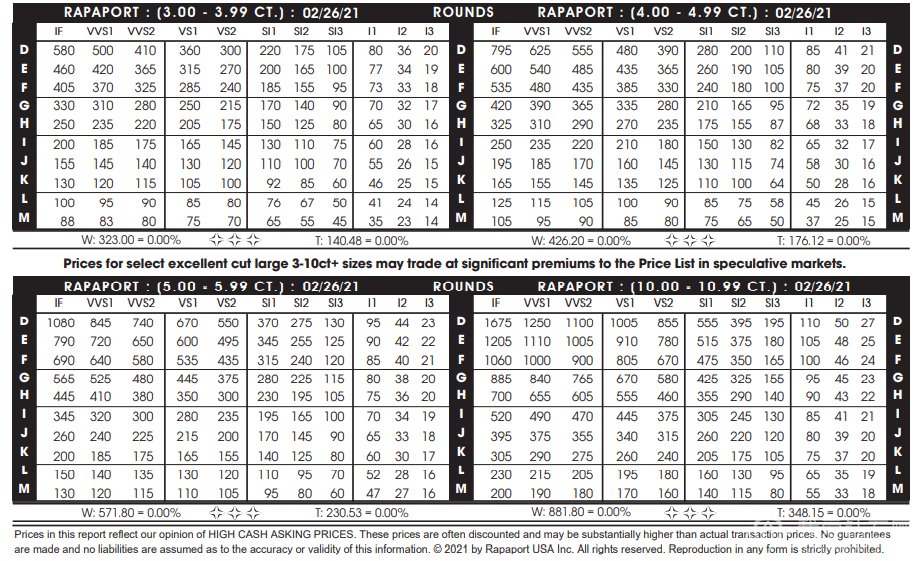 2021年2月26日最新Rapaport钻石报价表(图文)
