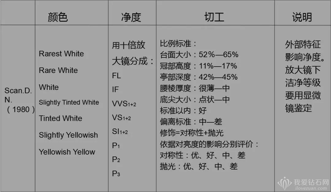 1980nianjinxinglegengxin,zaiyanseyujingdufenjishangyugiajiaojiejin,xianglveshangyouxiequbie。zaiqiegongpingjiashang,yiscandinavianbiaozhunyuanzuanweiyiju。scan.d.n.shiouzhouwenshizuizaodexitongdezuanshifenjibiaozhun,duiouzhougeguodezuanshifenjibiaozhundejianlihegaijinqidaocujinzuoyong。