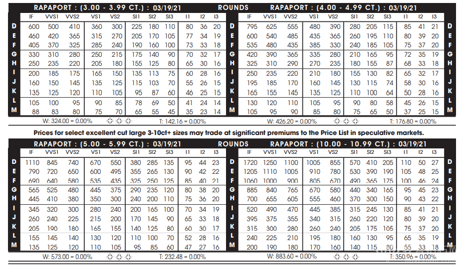 2021年3月19日最新Rapaport钻石报价表(图文)