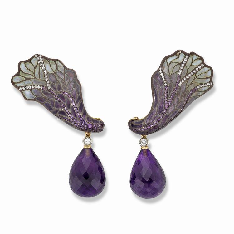 zuiweimeideshiyiduiiris petaleerhuan,chuzixibanyashejishi luz camino——yunyongkongchuangfalang(plique à jour)gongyisuzaochuyuanweihuatongtoumingjingdezisehuaban,zuanshilishigouleyemai;dibuchuiluo2kezongzhong56.41ctdezishuijing,dazaochuliuguangyicaidexiaoguo。