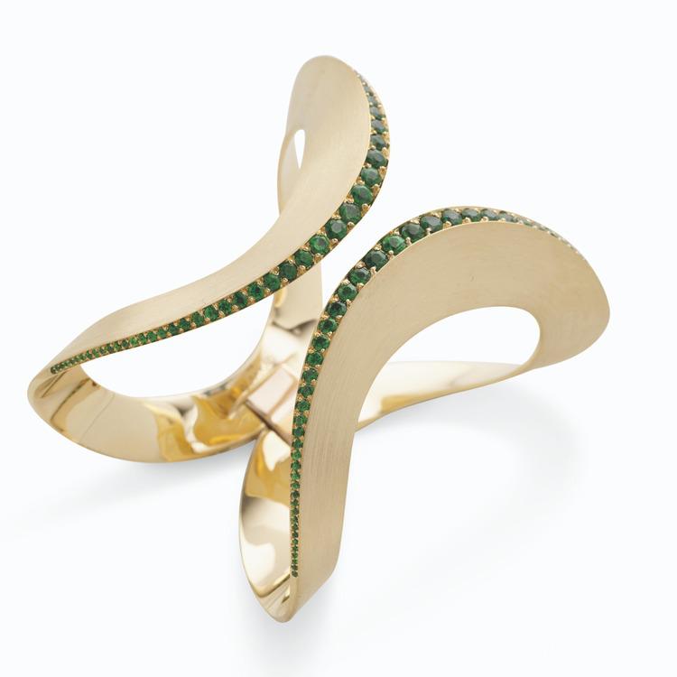 zuijudiaosugandeshishejishi walid akkad chengxiandeyimeihuangjinshouzhuo——huangjintongguopaoguang、lasidenggongyi,suzaochuduichengdequmianyuanhuanjiegou。shouzhuobianyuanpupaigong156kedaxiaojiancideshafulaishi,meikebaoshideyansejiweixiangjin,chengxianmingliangdexianlvsediao。