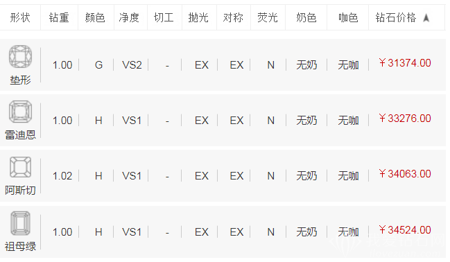 推荐钻石参数搭配:
