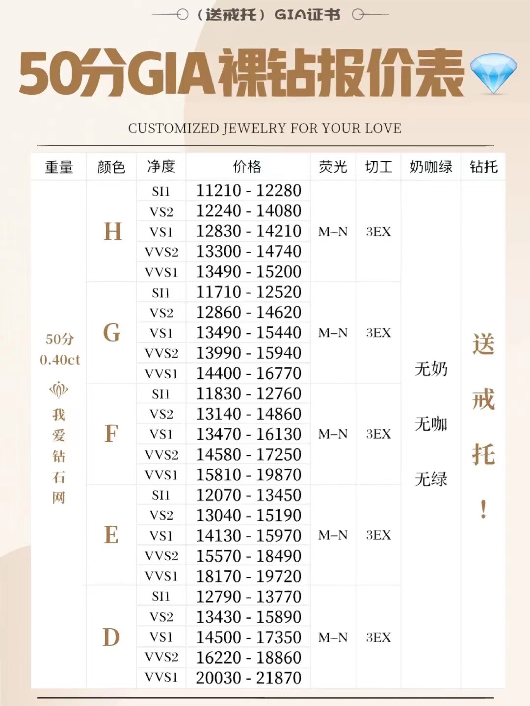 yixiaweizuixinde50fenzuanshijiagebiao,keyifaxian,zuanshiyanse、jingdudengcanshujibiebutong,zuizhongbaojiahuixiangchashenyuan: