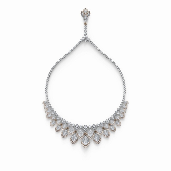 winterdongjizhutilingganlaizidongrijiebingdehuboheheliu——zheiyixilieyunyongbaijinhezuanshidejianjiedapeihuyingdongridebinglengchunjing,zuiyinrenzhuyideshiyijianjiaolianshixianglian,caiyongbutongdaxiaohexingzhuangdesanjiaoxingbaijinpianqiaomiaopinjie,yourudongrishuimianshangdefubing,xiangqianjin3000kezuanshiyingzaochuyiyiguangmang;xianglianzuidaliangdianshichuiluoyikehanjiande5.06ctshuidixingqiegenongcaishenlvhuisezuanshi,shanshuohuocaiyuyike2.03ctgongzhufangxingqiegezuanshixianghuiying。