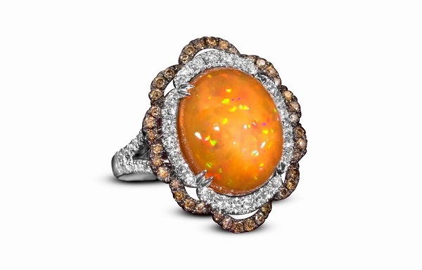 zhushiweiyikehumianqiegeoubo,xiangqianyuanxingqiegefenselanbaoshi、wusezuanshihexiangbinsezuanshi。