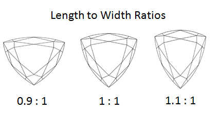 通常来说,Trilliant切工是将宝石切割出相同的侧面,整体共由31或50个刻面组成。完美的Trilliant切工宝石应该呈等边三角形,最理想的情况就是其每一侧的比例为1:1:1。