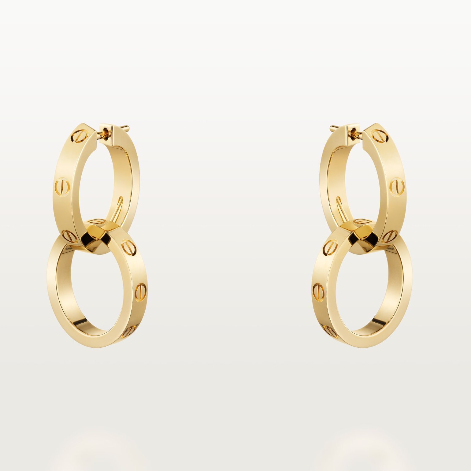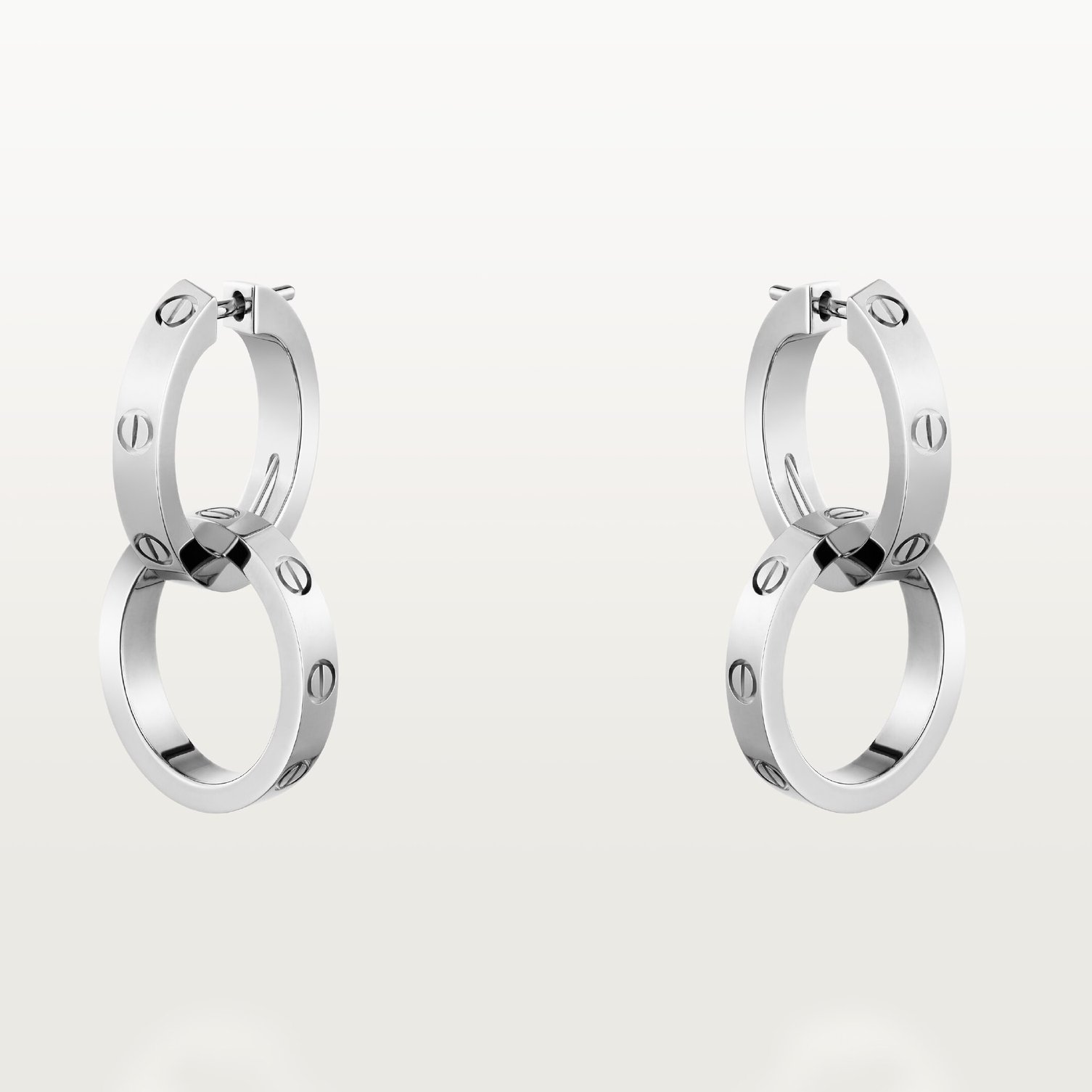 卡地亚推出Love系列新一季作品,新作巧妙将2个 Love 圆环嵌套相连,塑造出灵动摆荡的耳坠单品。作品还特别融入可转换结构,呈现丰富的佩戴可能。部分耳环款式表面密镶钻石,更添精致璀璨魅力。