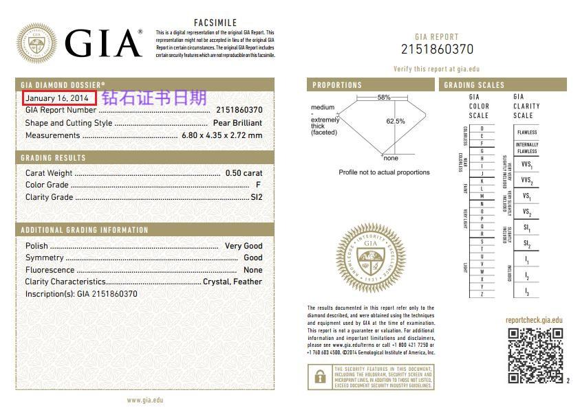 无法通过证书日期确定这颗钻石是二手的。