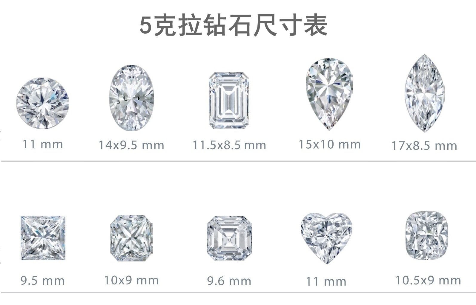 需要明确一点:重量≠大小。钻石重量和尺寸并不一定成正比,切割比例、钻石形状都会影响钻石的尺寸。