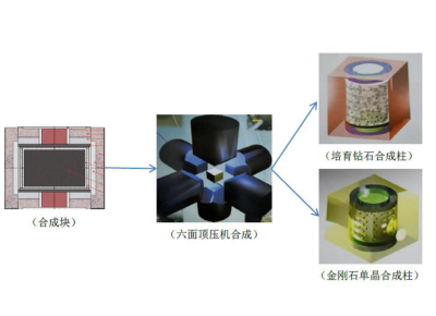 HPHT(高温高压)法是直接模拟天然钻石在地幔生成的物理环境来生产钻石。其基本方法是将一颗石墨晶种和金属助溶剂放入六面顶压机的舱室中,再控制其舱室内的温度和压力,让其达到两千摄氏度以上以及103.4亿帕每平方英尺的压力。