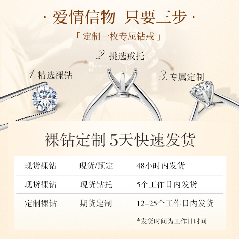 商品点评:求婚成功,戒指来说,挺好,在阳光下面火彩很棒。在选钻戒期间考虑了很多,最好还是相信大品牌。客服很热情。谢谢推荐。