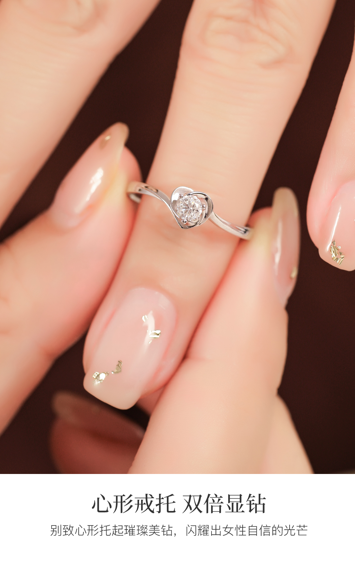 商品点评:送媳妇儿的戒指,不算贵但是是真钻,情比金坚,媳妇说戒指她很满意