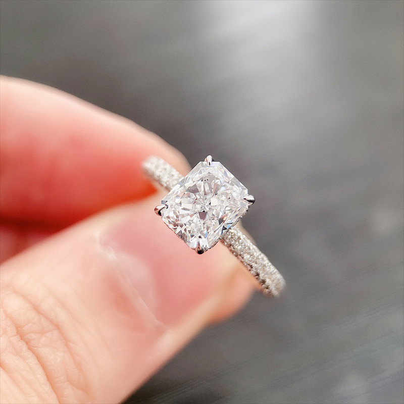商品点评:戒指造型极简大方,灯光下格外耀眼,她喜欢到不得了,看着她开心感觉格外幸福