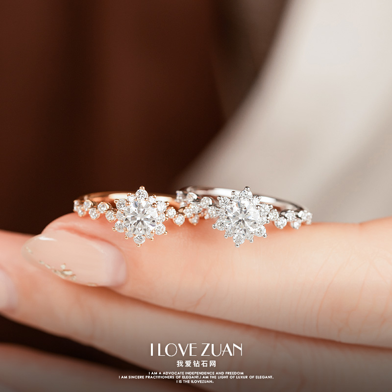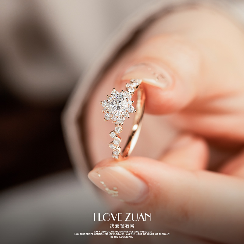 爱星河/18K彩金钻石戒指/1克拉G色SI1净度3EX切工GIA双证书