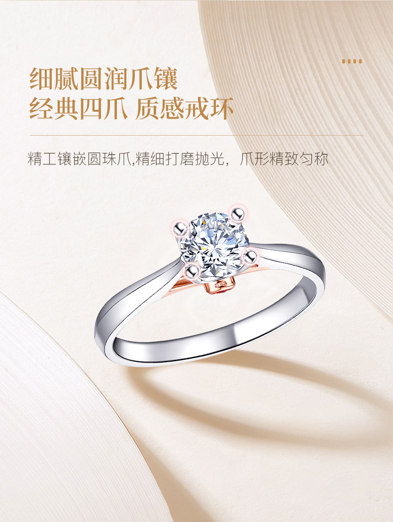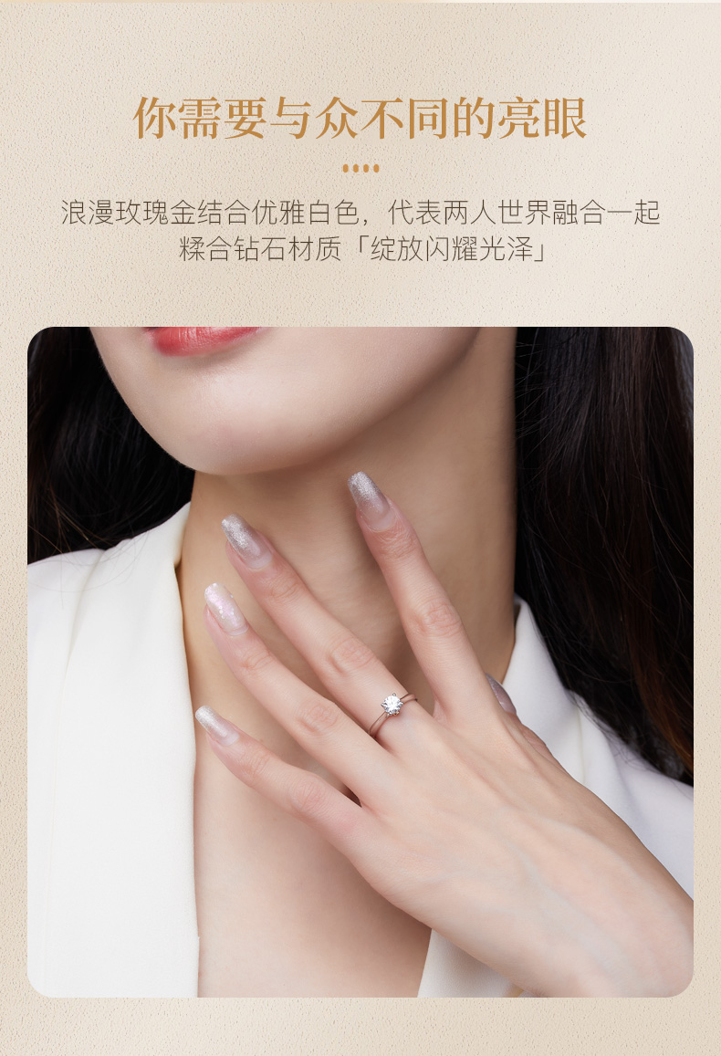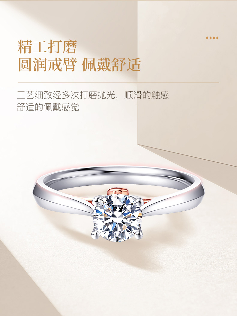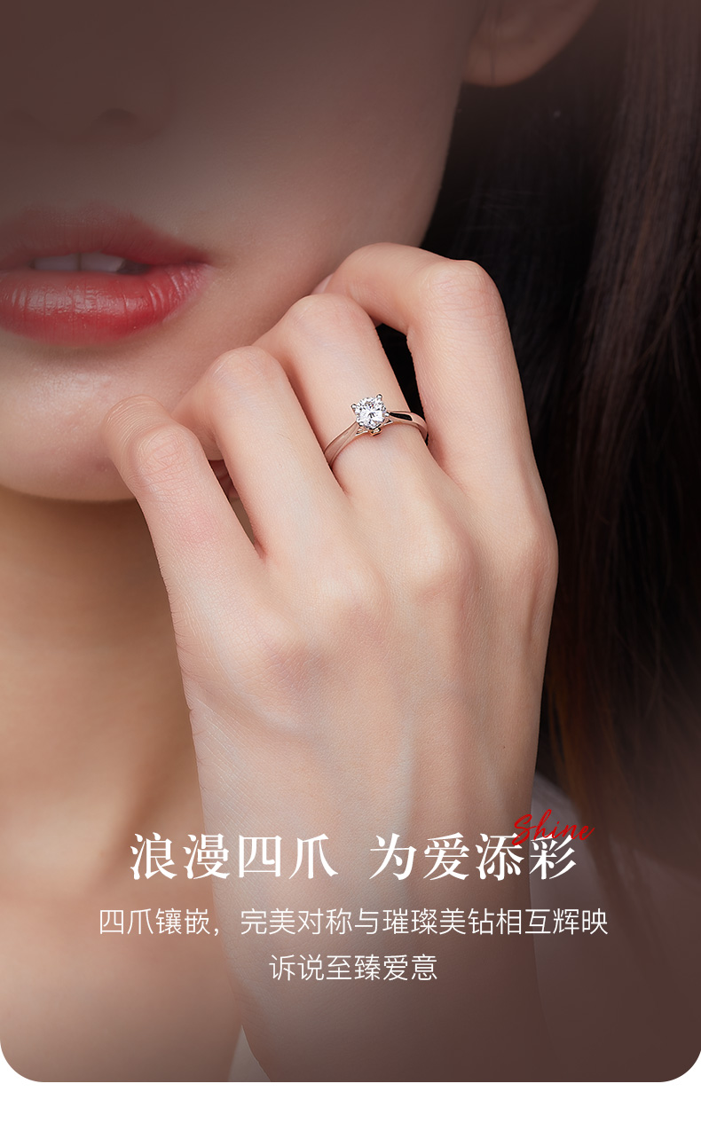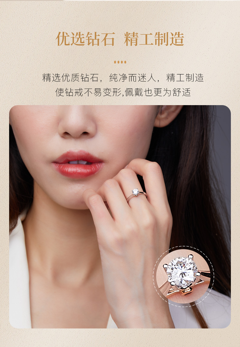 商品点评:货收到了,立马佩戴起来,戒指的佩戴效果很好,钻的大小也刚刚好,样式也特别好看。客服云云服务很到位,很贴心,很感动。良心商家,真的特别喜欢。