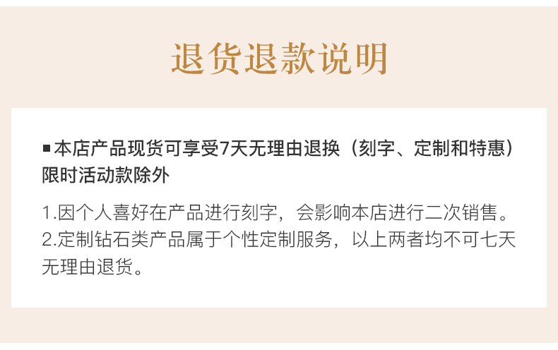 单或发票上的出票日期为准)拨打客户服务热线188 2372 5712联系我爱钻石网客户服务部门,进行退换货预约,在确定符合退换条件之后,