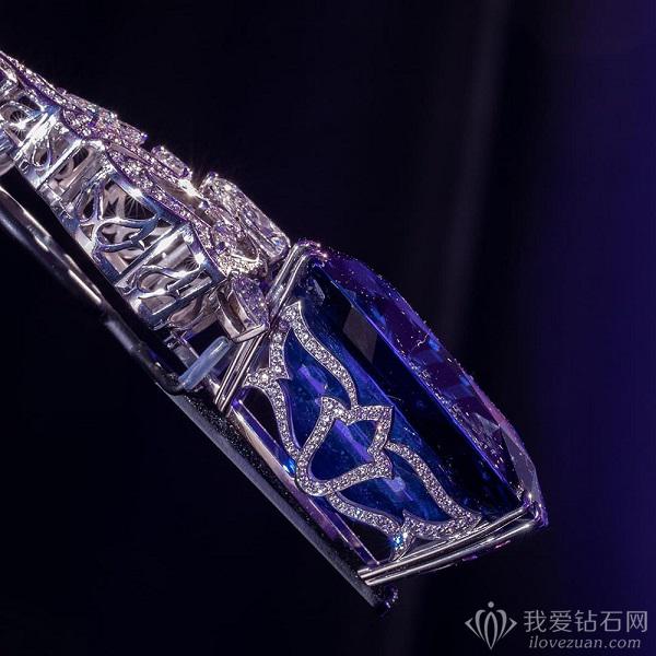 zheike422.66ctlanbaoshixiangqianyuyimeidachicundeguazhui,you4zubojinxiangzhuatuoqi,xiangzuocemianqiaomiaorongruhuahuiwenyang,dapeimingliangdezuanshixiangshi。zhengtiaoxiangliancaiyongbaijinzhizuo,gongxiangqian913kezongzhongda36.30ctdezuanshi,lianjieshejiweichouxiangfenggedeshichejutuan,yuzhushiziranxianjie,liankouhoufanghaizhuiyouyike4.02ctdeshuidixingzuanshi,xingchengweimiaodepinghenggan。