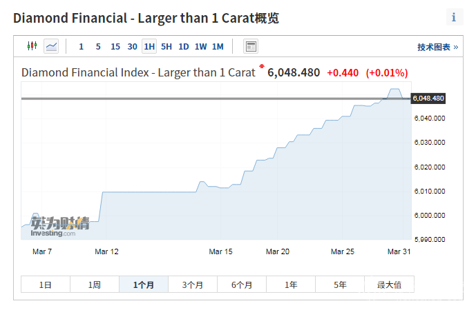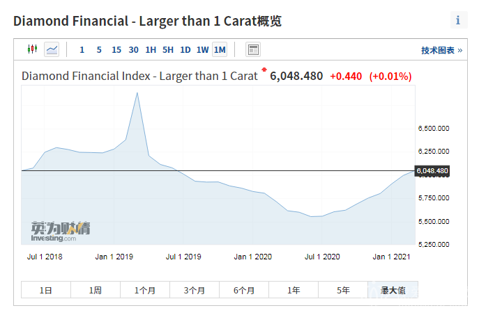 2021nian3yue,1kelayishangzuanshijiagejiagezhishu(larger than 1 carat)kaipan5996,jiezhi3yue31ri,shoupan6048.48,shangzhang0.88%,jinnianyileijishangzhang4.26%。