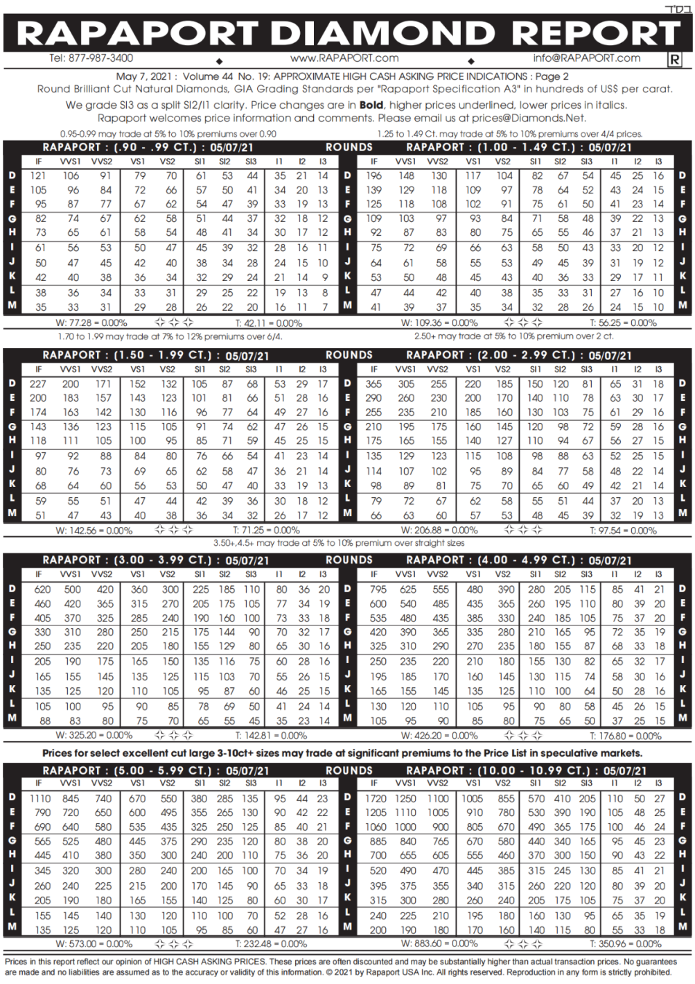 2021年5月7日最新Rapaport钻石报价表(图文)