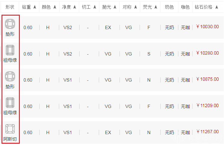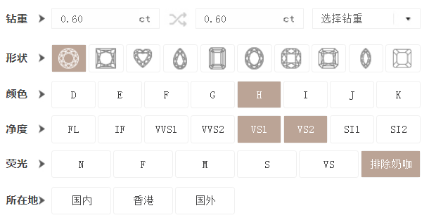 以下图表为最新60分H色vs裸钻价格表(部分)