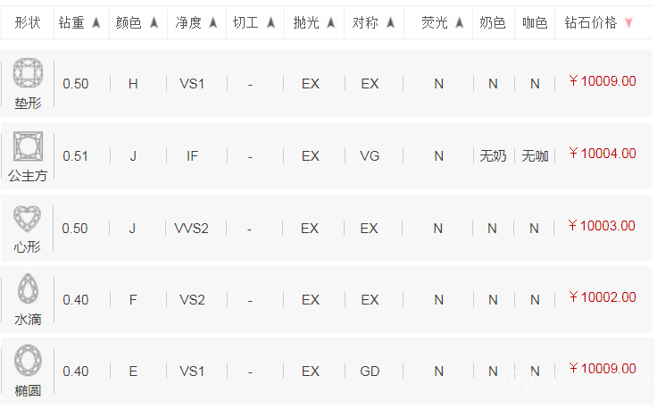 butongxingzhuangdeyixingzuan,jiageyeshibuyiyangde,anzhaoshichangbaojia,yixingzuanjiagecongdidaogaodagaishi:dianxing(zhenxing)<zumulv<gongzhufang<leidien<xinxing<shuidi<tuoyuanxing。biru1wanyuanyusuan,dianxingzuankeyimai0.52ct、h、vs2、2ex、nwuyingguangde,tuoyuanxingzuanshizhinengxuan0.5ct、i、vs2、ex vg、mzhongyingguang。