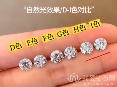 但直接观察钻石,无论在阳光直射下,还是在室内光线下,D-H色的钻石基本都看不出颜色区别。