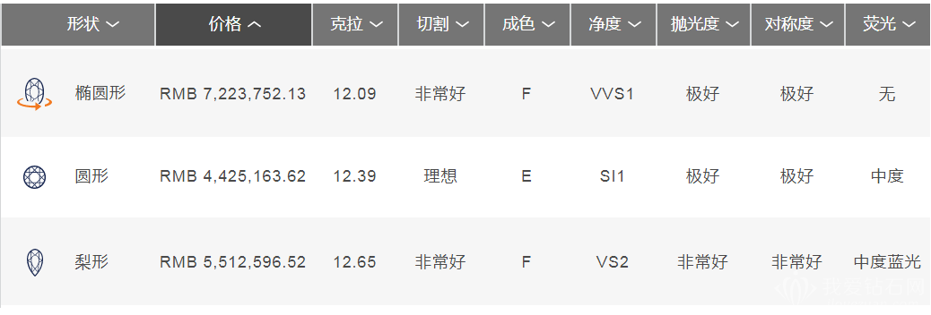 12kelazhideshizuanshizhongliang,eryingxiang12kelazuanjiejiagedeyinsuhaibaokuozuanshiyanse、zuanshijingdu、zuanshiqiegong、zuanshiyingguangdeng,xiamianshibutongcanshudengjide12kelazuanshibaojia:
