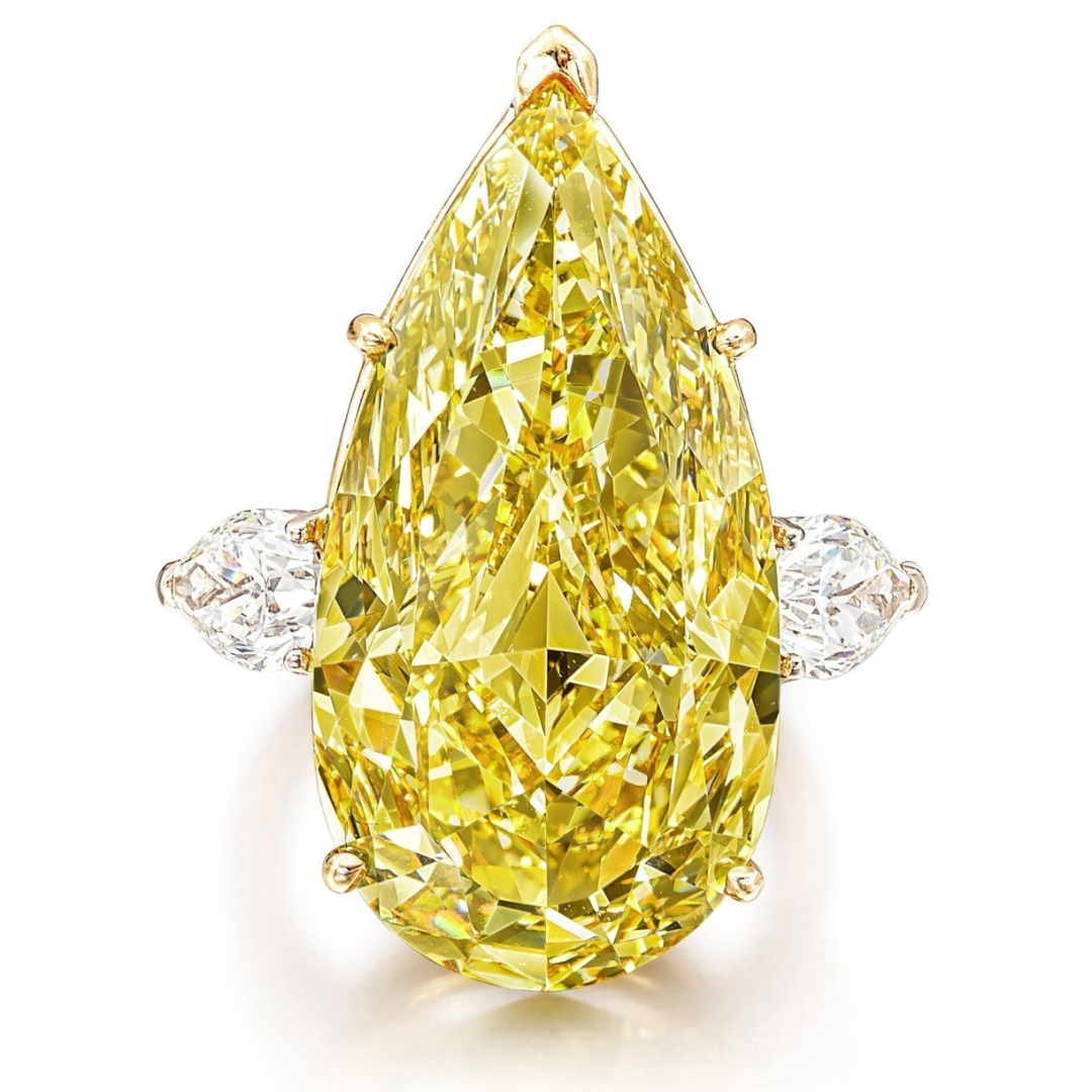 paipinliangdian:zheimeihuangzuanjiezhizhushiweiyike29.75ctshuidixingqiegehuangzuan,jing gia jiandingwei fancy intense yellow sejihe vvs1 jingdu。liangcexiangqian2keshuidixingqiegewusezuanshi。