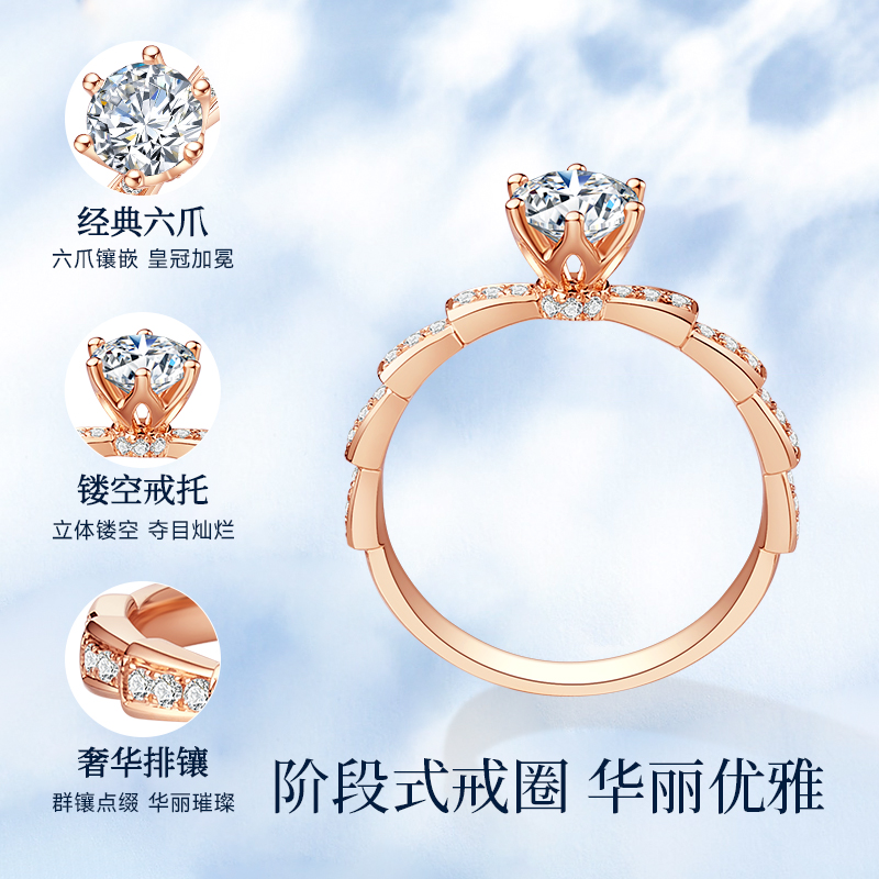 首页>钻石女戒>爱的阶梯/18K彩金钻戒 30分F-G/SI国检